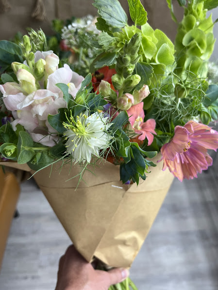 Thoughtfully gathered and hand-tied the Market Bundle comes without a jar/vase. Each bundle features focal flower stems with select greenery and coordinating filler flowers. Please know that every bouquet is one-of-a-kind just like the changing seasons. You’ll see different colors and flowers each week depending on what’s looking great in the field.